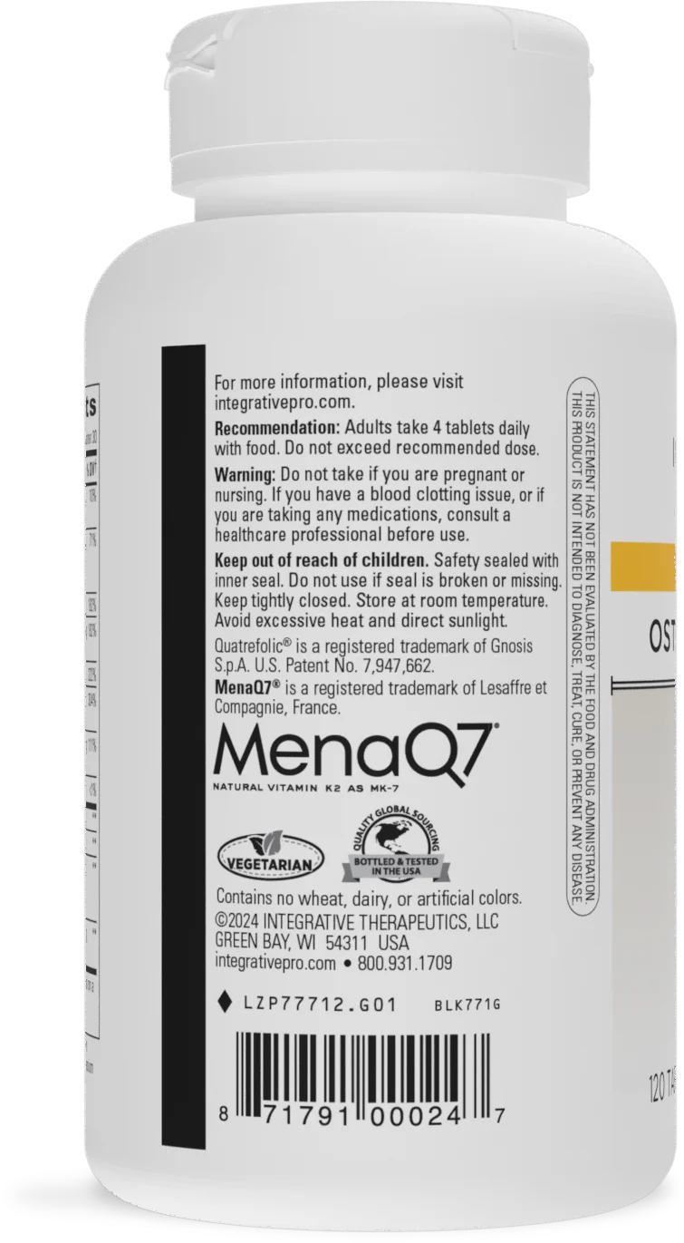 OsteoPrime® Ultra is a scientifically formulated blend developed in collaboration with Dr. Alan Gaby, a renowned expert in bone health. This advanced supplement includes 24 essential vitamins, trace minerals, and key nutrients to support and maintain healthy bones and bone structure. A standout feature is its inclusion of vitamin K2, a highly bioavailable form that maintains relatively constant levels in the blood, unlike vitamin K1, thereby enhancing calcium absorption and bone-building functions. With a combination of five forms of calcium, along with magnesium, zinc, and other supportive nutrients, OsteoPrime® Ultra offers a comprehensive approach to bone health, particularly beneficial for individuals during and after menopause.